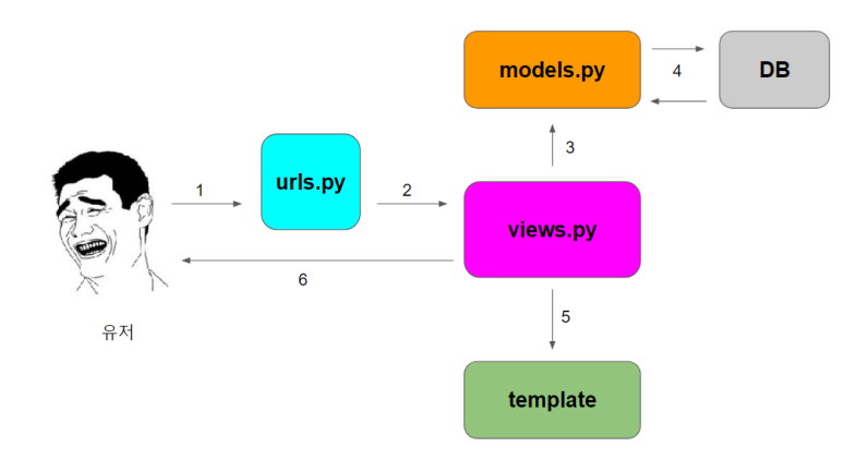 (간혹 MVT라고 부르는 분들도 계시지만 저는 MVC에 대응시키기 편하게 MTV를 사용합니다.)