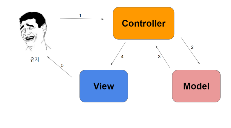 1. 유저가 컨트롤러에 요청을 보냅니다.(예시 : 뷰에 있는 Submit 버튼을 누른다)
